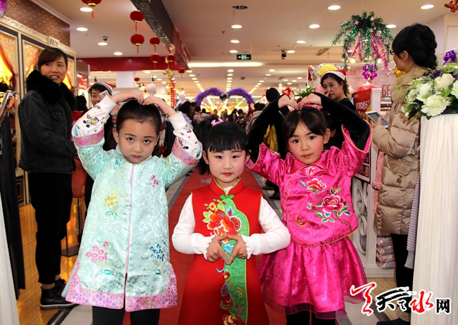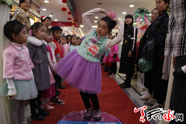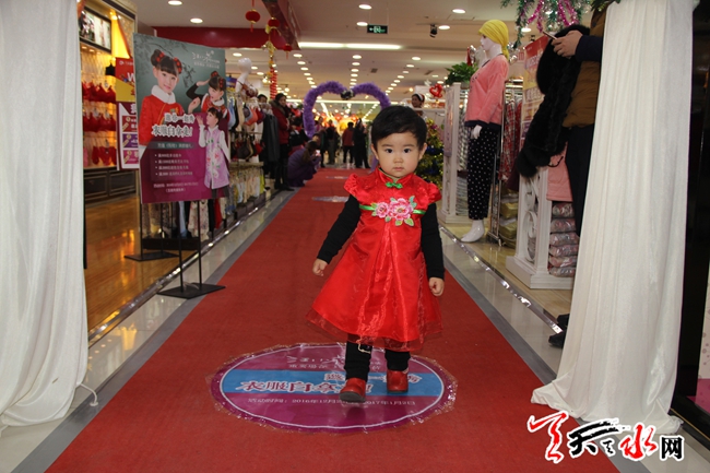 天天天水網(wǎng)25日17時訊 【記者 邵蘭霞】12月25日,商家為預(yù)熱新年,在某大型商場舉辦少兒走秀活動,這場走秀將中國元素與節(jié)日氛圍結(jié)合起來,吸引不少市民前來觀看、現(xiàn)場拍照。