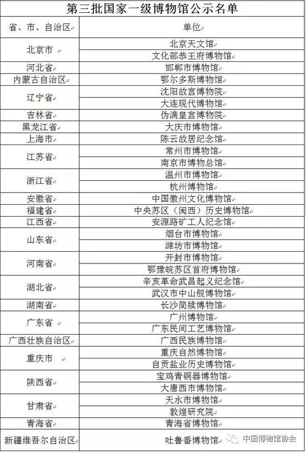 附:第三批國家一級博物館公示名單