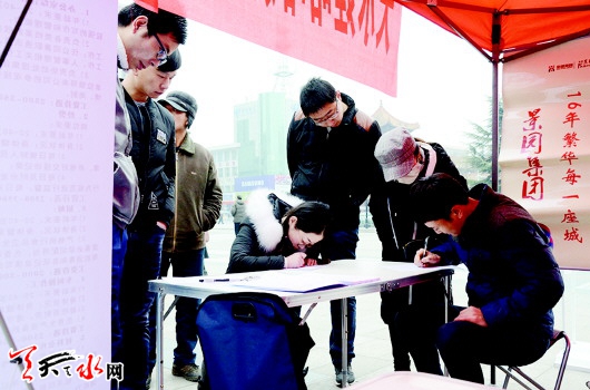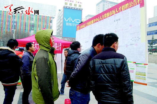 天天天水網(wǎng)訊【記者張彬霞】12月30日,由市總工會(huì)就業(yè)服務(wù)中心主辦,市青年創(chuàng)業(yè)就業(yè)服務(wù)中心承辦的天水市2016年工會(huì)冬季第二季就業(yè)暨高校畢業(yè)生專(zhuān)場(chǎng)招聘會(huì)在市龍城廣場(chǎng)舉行。本次招聘會(huì)主要面向社會(huì)未就業(yè)的下崗職工和青年、高校畢業(yè)生及社會(huì)其它各類(lèi)人群。
