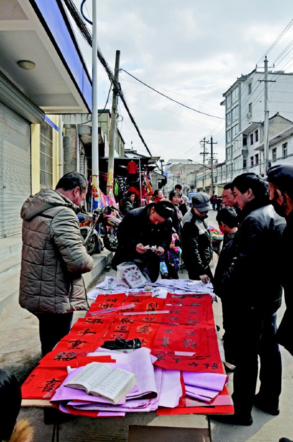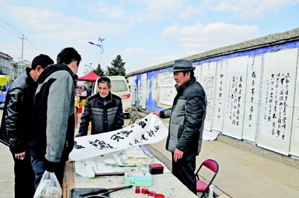 在年集上,笤帚似乎比蔬菜副食更必須,時不時就會碰到村民拿著新買的笤帚,興高采烈趕年集的情景。賣笤帚的小伙告訴記者說,過幾天就要打掃衛(wèi)生掃房了,笤帚家家得買一把準(zhǔn)備上??ü献硬荒苌?;糖果也得買上一些;土蜂蜜送禮最好不過了,就是就價錢有點(diǎn)貴;蒜苗要買就得一整捆;買幅字畫掛家里,喜慶吉祥有文化……