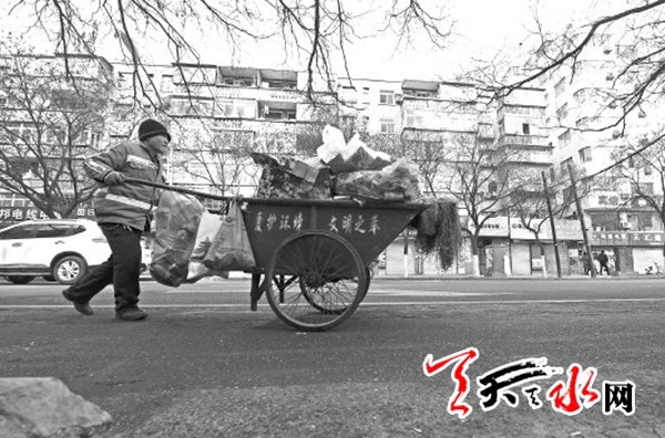 一名環(huán)衛(wèi)工在秦州區(qū)新華路清運(yùn)垃圾。記者 年葆東 攝