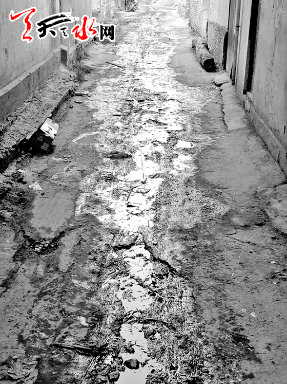 該巷道自硬化后,只要進入冬天,巷道里的污水就結(jié)上了4、5公分厚的冰。夏季,有人乘下雨之際,將化糞池里的污水也排放在路上流淌,平時巷道都是污水,不僅巷內(nèi)的住戶生活環(huán)境受到污染,凡是途經(jīng)此巷道的群眾,出行經(jīng)常都要涉水、踩爛泥。由于排水不暢,個別村民的房屋地基也受到了嚴重影響。對此,村民多次找村上、鎮(zhèn)上,希望能對此巷道重新進行硬化,開挖暗渠,解決排水不暢的問題,但一直得不到解決。