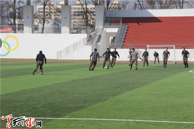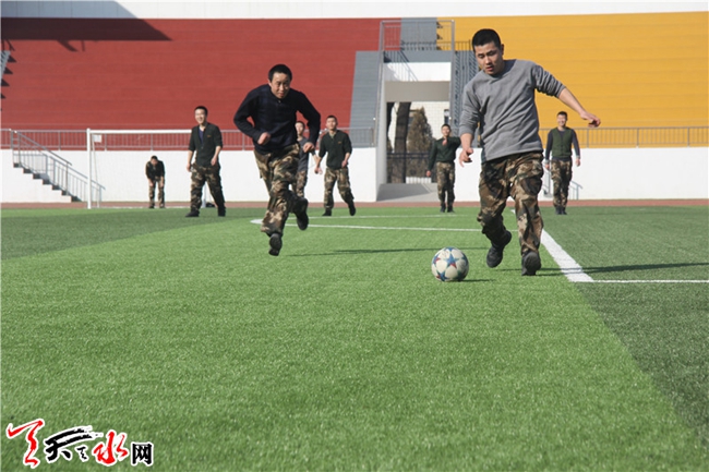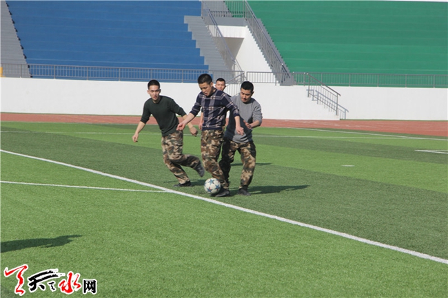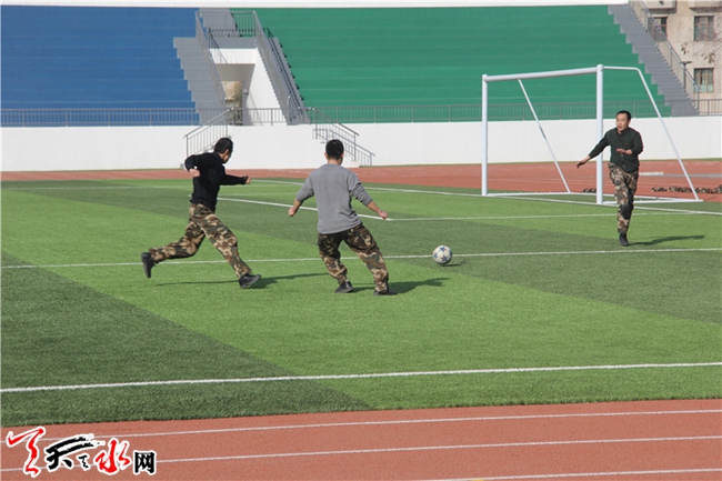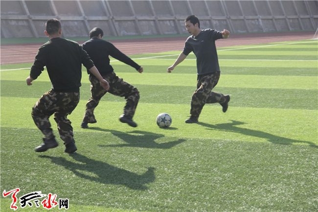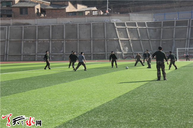天天天水網(wǎng)訊(王形 朱萬) 為了豐富中隊官兵課余生活,緩解執(zhí)勤訓練壓力,增進中隊官兵之間的深厚友誼,進一步增強大家的向心力和凝聚力,2月15日下午,甘谷中隊組織全體官兵開展足球比賽。