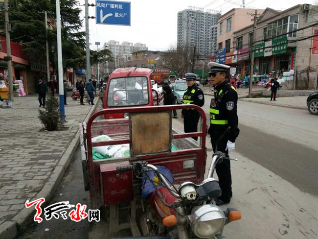天天天水網(wǎng)訊 3月16日早晨,麥積交警大隊值班室接多位群眾反映,今天社棠街道由于個別三輪車、私家車亂停亂放,攤主占道擺攤影響街道通行。接到群眾反映后社棠中隊立即從其他勤務(wù)中抽調(diào)警力,進(jìn)行清理整治,還路于民。