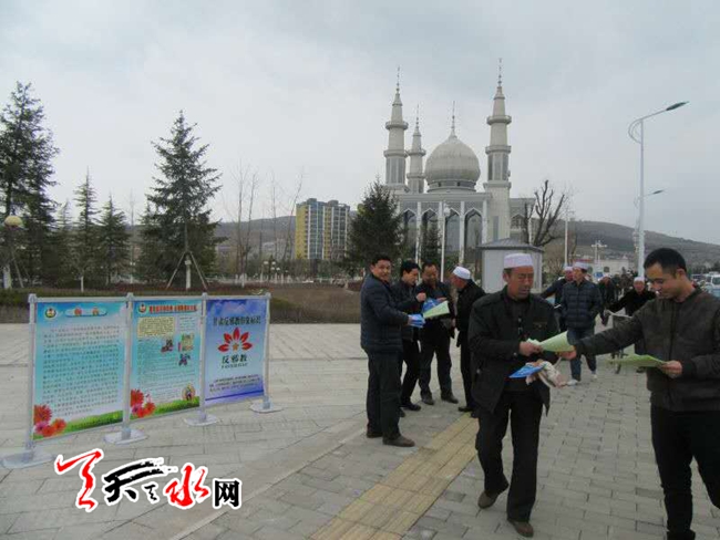 天天天水網訊 3月17日,張家川縣委防邪辦積極利用回族群眾“主麻日”,組織人員深入縣回鄉(xiāng)風情園清真寺開展反邪教集中宣傳日活動。