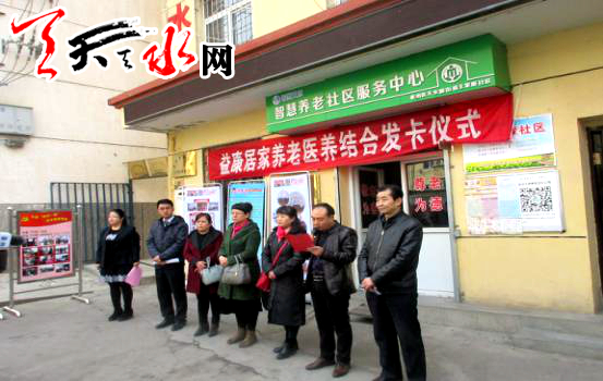 王家磨智慧社區(qū)居家養(yǎng)老健康服務(wù)中心采用醫(yī)療、養(yǎng)老、康復(fù)為一體的智慧社區(qū)服務(wù)模式,由益康居家養(yǎng)老服務(wù)中心攜手天水四O七醫(yī)院及交通銀行天水分行共同為老年人辦理醫(yī)養(yǎng)結(jié)合卡,讓社區(qū)老年人真正做到老有所醫(yī),老有所養(yǎng)。