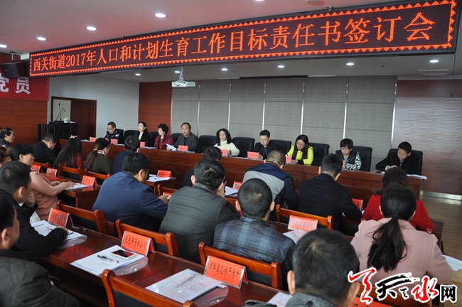 天天天水網(wǎng)訊 (通訊員 高亞平)3月28日上午,西關(guān)街道在農(nóng)業(yè)大廈18樓會議室召開2017年轄區(qū)單位衛(wèi)生和計生工作專題會議,來自轄區(qū)50家計劃生育責(zé)任單位負責(zé)人約220人參加了會議。會議由街道黨工委書記劉開奇主持,回顧總結(jié)了2016年度人口和計劃生育工作和安排,部署2017年度衛(wèi)生和計生工作,并表彰獎勵了2016年度計劃生育先進單位和個人,簽訂了2017年度人口和計劃生育工作目標(biāo)責(zé)任書。