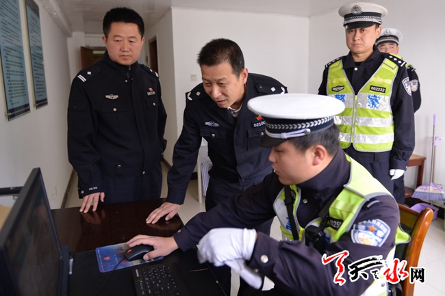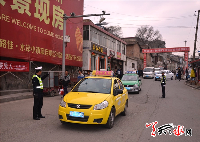 ▲4月4日交警支隊副政委黃泰生檢查秦州區(qū)交通保障工作