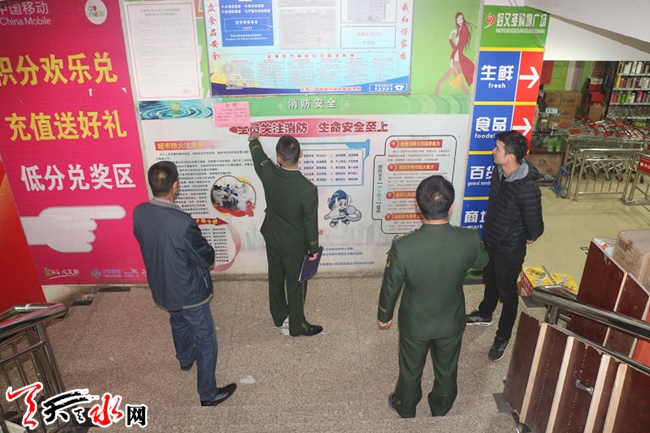 天天天水網(wǎng)訊 為進(jìn)一步夯實轄區(qū)火災(zāi)防控基礎(chǔ),減少火災(zāi)事故的發(fā)生,確保全縣火災(zāi)形勢高度穩(wěn)定,近日,張川消防大隊深入轄區(qū)超市、賓館、等人員密集場所開展消防安全大檢查。