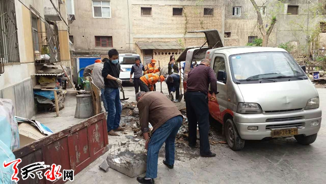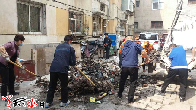 天天天水網(wǎng)訊 【通訊員劉麗霞】為了進(jìn)一步提升環(huán)保質(zhì)量,加大環(huán)境衛(wèi)生治理力度,使“三城聯(lián)創(chuàng)”創(chuàng)建工作更加深入。近日,秦州區(qū)東關(guān)街道十方堂社區(qū)組織居民對(duì)轄區(qū)酒廠家屬院樓棟夾角死角地衛(wèi)生進(jìn)行了清理整頓,社區(qū)干部、居民、環(huán)衛(wèi)工作人員共40余人參加了清理。