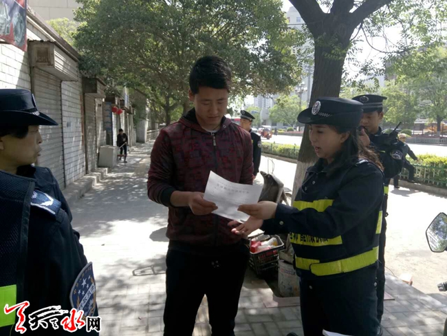 天天天水網(wǎng)訊(通訊員?靳雪萍)沿街店鋪店外亂設(shè)攤、亂堆放行為不僅損害城市形象,而且影響行人通行。近日,隨著羲皇大道交通安全綜合整治百日行動(dòng)的開(kāi)展,為進(jìn)一步加強(qiáng)市容市貌管理,提升城市品位和形象,給廣大市民營(yíng)造一個(gè)便捷通行的環(huán)境,秦州區(qū)城市管理行政執(zhí)法局玉泉中隊(duì)全面開(kāi)展對(duì)羲皇大道門(mén)店沿街亂設(shè)攤、亂堆放的綜合治理行動(dòng)。