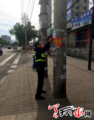 清理岷山路亂張貼100余處,亂吊掛條幅10余次,清理羲皇大道亂張貼200余處,亂吊掛條幅6條。勸導(dǎo)經(jīng)營(yíng)戶自行進(jìn)行清理,對(duì)據(jù)不改正的違章戶將對(duì)其依法進(jìn)行行政處罰。加強(qiáng)城市市容市貌管理,不斷提升城市形象。