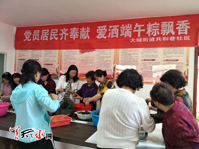 天天天水網(wǎng)訊 為繼承和弘揚(yáng)中華民族的優(yōu)秀傳統(tǒng)文化,增強(qiáng)同轄區(qū)居民家庭的溝通與聯(lián)系,使更多的家庭感受到節(jié)日文化的氛圍和社區(qū)的關(guān)懷并能讓他們開開心心的過上一個有意義的端午節(jié),5月27日,大城街道共和巷社區(qū)召集社區(qū)居民、黨員干部和志愿者們一同開展了“迎端午、包粽子送關(guān)懷”活動。