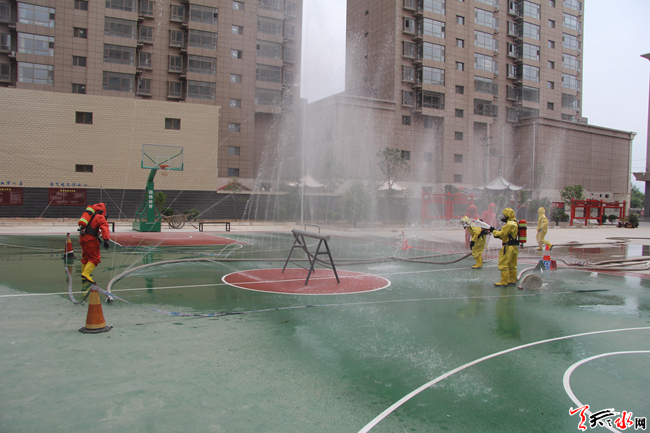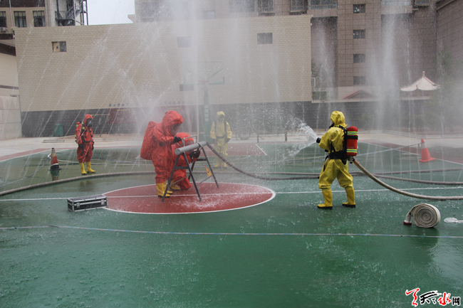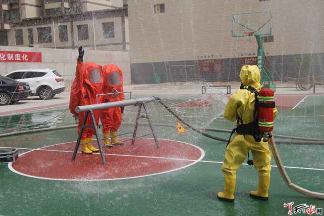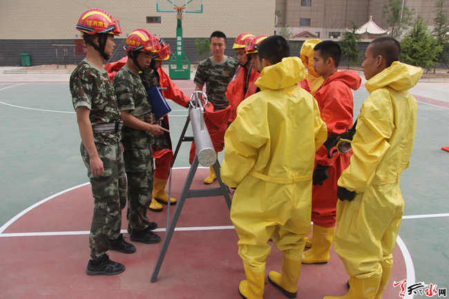 ????天天天水網(wǎng)訊(通訊員 安瑞)?為進一步加強轄區(qū)消防保衛(wèi)工作,強化官兵危化品處置能力,甘谷中隊結(jié)合部隊實際開展危化品泄漏處置操法。