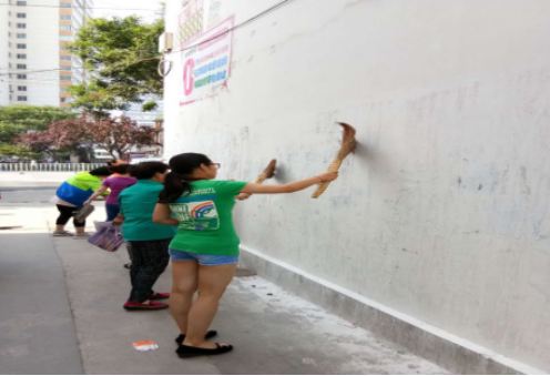 ????大家對轄區(qū)內(nèi)的小廣告、“牛皮癬”等影響轄區(qū)文明面貌的頑癥進(jìn)行了集中大清理,清理人員有的拿鏟子鏟,有的拿鋼絲球刷,難以清除的小廣告,志愿者就用鐵刷和扁鏟一點一點的將小廣告鏟除掉,再用涂料刷,遇到高處的廣告,就登板凳去鏟,大家干勁十足,盡力確保不漏衛(wèi)生死角,使轄區(qū)環(huán)境面貌煥然一新。