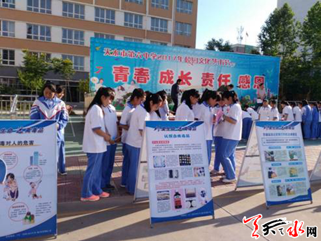 ????天天天水網(wǎng)訊【通訊員李雨霞】為了進(jìn)一步加大禁毒宣傳力度,使廣大人民群眾特別是青少年認(rèn)清毒品的危害,提高識(shí)毒、防毒、拒毒、禁毒意識(shí),在6月26日“國際禁毒日”,秦州區(qū)東關(guān)街道仁和里社區(qū)聯(lián)合天水市六中開展了“禁毒路上 你我同行”為主題宣傳教育送禁毒知識(shí)進(jìn)校園活動(dòng)。