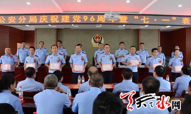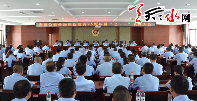 ????天天天水網(wǎng)訊 在“七一”來臨之際,為回顧總結(jié)一年以來黨建工作取得的成績,表彰先進(jìn)黨支部、優(yōu)秀黨務(wù)工作者和優(yōu)秀共產(chǎn)黨員,安排部署今后一個(gè)時(shí)期的黨建工作,推動(dòng)麥積公安分局各項(xiàng)事業(yè)健康發(fā)展,6月28日下午,麥積公安分局隆重召開慶祝建黨96周年暨“七一”表彰大會(huì)。麥積區(qū)政府黨組成員、分局黨委書記、局長李世和同志出席會(huì)議并做重要講話,黨委委員、政委張興盛同志主持會(huì)議,分局在家黨委委員,局屬各支部、各單位班子成員,受到表彰的優(yōu)秀共產(chǎn)黨員和部分黨員代表共189人參加大會(huì)。