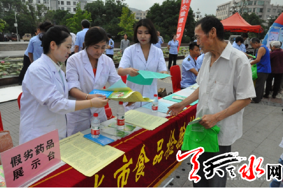 ????在這次活動(dòng)中,市食藥監(jiān)、公安、農(nóng)業(yè)等20個(gè)單位、5家食品生產(chǎn)企業(yè)及市保險(xiǎn)行業(yè)協(xié)會(huì),通過現(xiàn)場(chǎng)設(shè)置假劣食品藥品展示區(qū)、中藥材中藥飲片對(duì)比區(qū)、設(shè)立食品藥品投訴舉報(bào)受理臺(tái)、宣傳折頁等方式,現(xiàn)場(chǎng)向群眾展示并講解辨識(shí)假劣食品藥品的方法,為群眾答疑解惑。啟動(dòng)儀式現(xiàn)場(chǎng)共擺設(shè)《食品安全法》、食品安全知識(shí)、食品藥品典型案例等宣傳展板50塊;設(shè)置群眾咨詢臺(tái)4個(gè);懸掛宣傳橫幅16條;制作專題展板20塊;設(shè)立食品藥品投訴舉報(bào)現(xiàn)場(chǎng)受理處2個(gè);展示假劣食品藥品50余種;發(fā)放食品安全知識(shí)、《中小學(xué)生食品安全手冊(cè)》、《家庭食品安全指南》、《食品安全法》解讀等宣傳冊(cè)、宣傳材料共4000余份;接受群眾咨詢1000余人次。