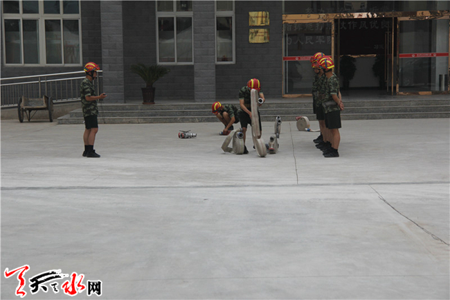 ????甘谷中隊(duì)開展一人三盤水帶連接操訓(xùn)練