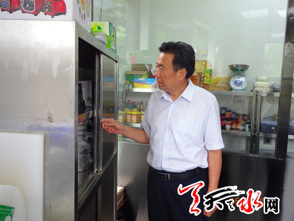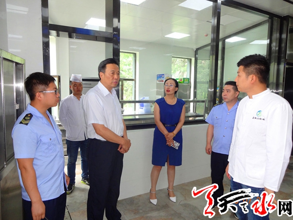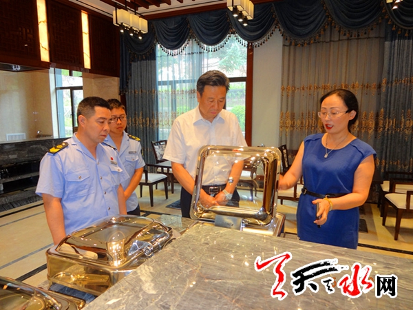 ????天天天水網(wǎng)訊 為了做好2017年綠色及可持續(xù)發(fā)展麥積山論壇期間餐飲食品安全保障工作,確保麥積山論壇期間參會代表的飲食安全,7月15日,市食品藥品監(jiān)督管理局局長陳克孝帶隊,對麥積山論壇定點接待酒店餐飲食品安全保障工作進行了檢查,對駐點保障執(zhí)法人員和定點接待餐飲單位提出了嚴格要求。