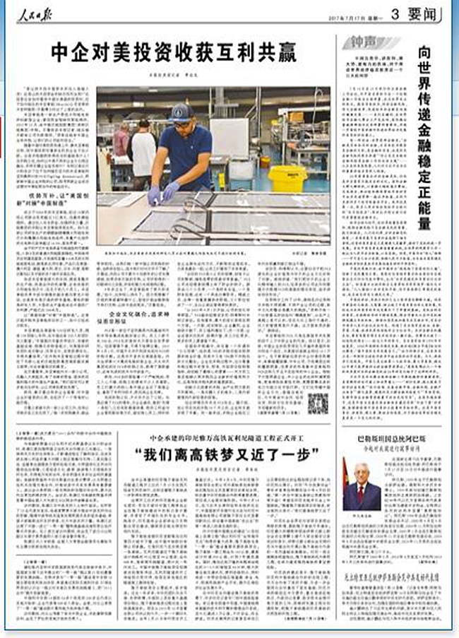 ????米亞索能和FCI,只是在美國(guó)尋求發(fā)展的成千上萬(wàn)中資企業(yè)的代表。統(tǒng)計(jì)顯示,目前,中國(guó)企業(yè)的投資項(xiàng)目幾乎遍布美國(guó)所有州和各個(gè)選區(qū),為美國(guó)創(chuàng)造就業(yè)崗位14.1萬(wàn)余個(gè)。在不斷刷新紀(jì)錄的中企對(duì)美投資潮中,有像福耀玻璃、中車公司、萬(wàn)向集團(tuán)這樣的耀眼明星,但更多的則是像米亞索能和FCI這樣幾乎名不見(jiàn)經(jīng)傳的中小企業(yè)。相較于大型明星企業(yè),中小企業(yè)的生存環(huán)境更困難,更難得到政策性支持,更需要靠自身的實(shí)力與能力在市場(chǎng)打拼。它們?cè)趥鞑ブ袊?guó)的企業(yè)文化,造福當(dāng)?shù)厣鐓^(qū),為中美省州合作、經(jīng)貿(mào)往來(lái)、民間交往夯實(shí)基礎(chǔ),書(shū)寫(xiě)著新的歷史。