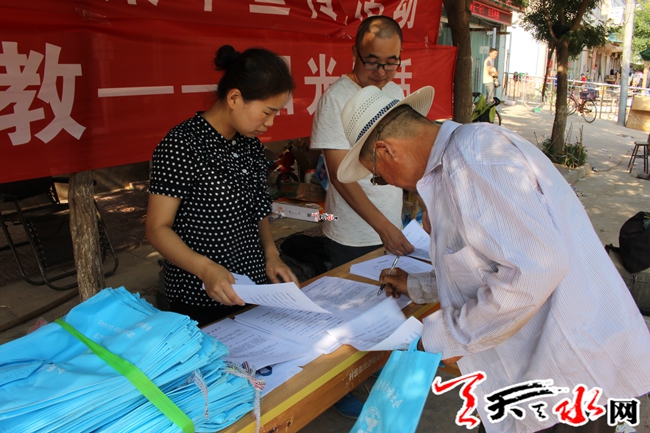 ????活動(dòng)現(xiàn)場采取懸掛橫幅、展出展板、廣播宣傳、現(xiàn)場咨詢、發(fā)放宣傳資料、簽訂拒絕邪教承諾卡等多種方式進(jìn)行集中宣傳,向現(xiàn)場群眾大力普及反邪教相關(guān)知識(shí)。同時(shí),大力宣傳推廣了省“四合一”、市“三合一”和武山政法微信公眾號(hào)反邪教專欄,進(jìn)一步擴(kuò)大了宣傳的影響力和覆蓋面。活動(dòng)中,共計(jì)懸掛宣傳橫幅4條,累計(jì)發(fā)放宣傳資料300余份,現(xiàn)場簽訂“家庭拒絕邪教”承諾卡300余份,解答群眾咨詢100余人次。