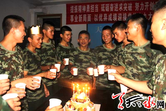????天天天水網(wǎng)訊“祝你生日快樂(lè).....”歡快的祝福聲在樓道里久久回蕩,7月22日晚,天水郡中隊(duì)為全體官兵舉辦集體生日晚會(huì),為七月份過(guò)生日的戰(zhàn)友精心準(zhǔn)備了一場(chǎng)溫馨的集體生日晚會(huì),閃爍的燭光,別致的生日蛋糕,讓警營(yíng)有了別樣的溫馨氣氛。