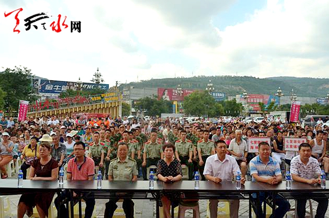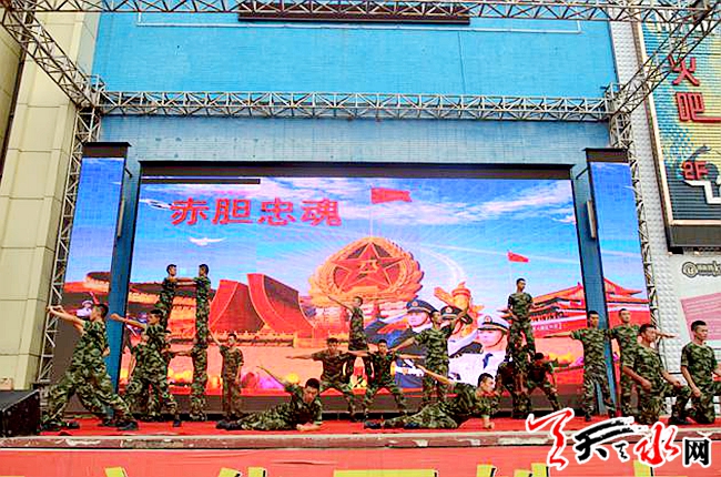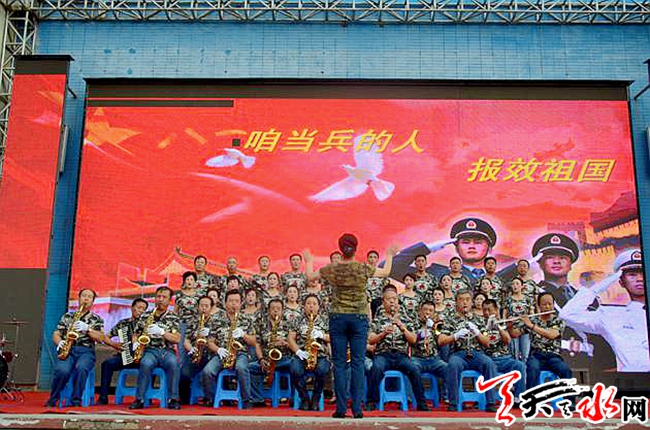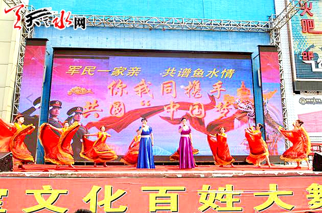 ????天天天水網(wǎng)訊 7月26日,在建軍90周年來臨之際,七里墩街道在天河廣場百姓大舞臺舉辦“軍民魚水情”文藝匯演。街道全體干部職工、天水市消防支隊官兵和居民群眾800多人觀看了演出。