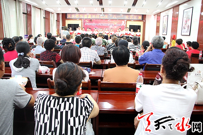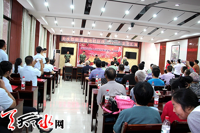 ????天天天水網(wǎng)訊 “軍民共建魚水情深,擁軍愛民再造輝煌”,中國(guó)人民解放軍建軍90周年之際,天水郡街道瀛池社區(qū)以最美好的歌聲表達(dá)心底的聲音,用最曼妙的舞姿跳出心中的喜悅。7月27日,瀛池社區(qū)舉辦了慶“八一”文藝匯演,參加本次演出的有轄區(qū)單位代表、消防官兵和社區(qū)文藝愛好者等。