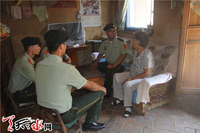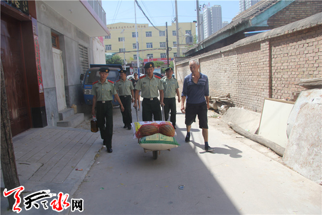 ????天天天水網(wǎng)訊 在“八一”建軍節(jié)來臨之際,為進(jìn)一步密切警民和諧關(guān)系,弘揚(yáng)消防部隊(duì)的優(yōu)良傳統(tǒng),全面深化黨的群眾路線活動(dòng),7月31日下午,甘谷中隊(duì)官兵在執(zhí)勤訓(xùn)練忙碌之際,帶著米、面、油等生活用品、慰問品,走訪看望了駐地貧困家庭,送上中隊(duì)官兵們的深切問候和關(guān)心。