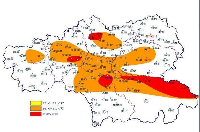 ?????天天天水網(wǎng)訊 天水市氣象臺2017年8月3日14時50分發(fā)布高溫紅色預警信號:目前我市秦州區(qū)城區(qū)、麥積區(qū)城區(qū)、元龍、吳砦、東岔等個別鄉(xiāng)鎮(zhèn)已達到37℃以上,預計今天下午,我市秦州區(qū)北部、麥積區(qū)東北部、武山縣中北部、甘谷縣中部、秦安縣中北部、清水縣中西部部分鄉(xiāng)鎮(zhèn)日最高氣溫將達到37℃以上,其中麥積區(qū)元龍、吳砦、東岔等鄉(xiāng)鎮(zhèn)日最高氣溫可能達到40℃以上,請做好防暑降溫工作。