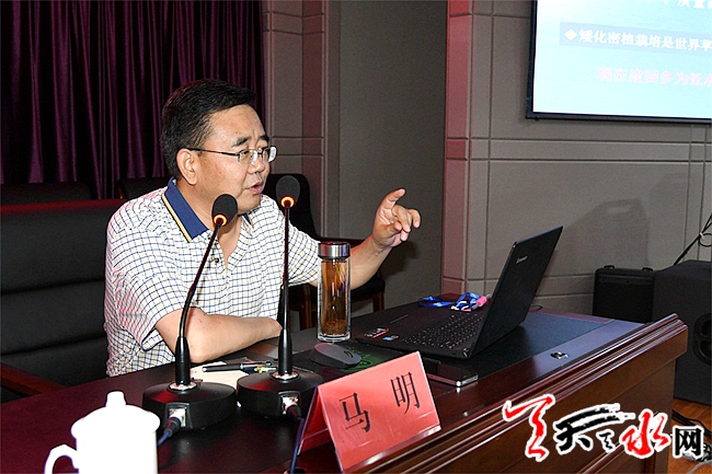 ????甘肅省果業(yè)管理辦公室主任李國(guó)梁、甘肅省農(nóng)科院林果花卉所所長(zhǎng)馬明、天水市果樹研究所研究員郭建明等果樹專家做專題講座,專家教授通過講授《當(dāng)前國(guó)內(nèi)外蘋果栽培現(xiàn)狀及發(fā)展方向》《甘肅蘋果優(yōu)勢(shì)產(chǎn)業(yè)優(yōu)勢(shì)扶持重點(diǎn)與主推技術(shù)》《天水花牛蘋果現(xiàn)代管理綜合技術(shù)》《天水花牛蘋果病蟲害綜合防控及農(nóng)藥減施增效技術(shù)集成研究與示范》,著重從蘋果產(chǎn)業(yè)發(fā)展動(dòng)態(tài)、現(xiàn)代栽培技術(shù)和苗木繁育、幼園早果豐產(chǎn)、水肥一體化管理、郁閉老果園改造、病蟲害防治進(jìn)行了為期兩天的專題培訓(xùn),通過專家教授的精彩講座,使參訓(xùn)學(xué)員進(jìn)一步掌握了國(guó)內(nèi)外先進(jìn)的果樹栽培技術(shù)和管理理念,力促果園在最短的時(shí)間內(nèi)見到效益,生產(chǎn)最優(yōu)質(zhì)的果品,收獲最佳的經(jīng)濟(jì)效益。