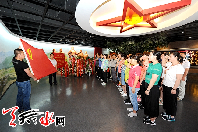????在紅軍長征哈達鋪紀念館大型偉人浮雕前,麥積區(qū)林業(yè)局機關黨支部全體黨員面對鮮紅的黨旗,緊握右拳,重溫入黨誓詞,飽含激情,以鏗鏘有力的聲音許下錚錚誓言。