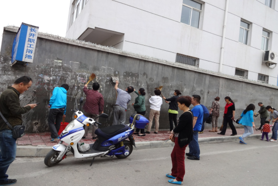 ????社區(qū)黨委組織在職黨員和轄區(qū)居民清理環(huán)境衛(wèi)生