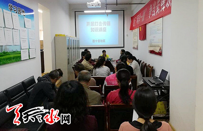 天天天水網(wǎng)訊(通訊員李小霞)為進(jìn)一步加大打擊傳銷工作力度,營(yíng)造和諧穩(wěn)定的社會(huì)環(huán)境。2017年9月1日,天水郡街道西十里社區(qū)在轄區(qū)范圍內(nèi)開(kāi)展打擊傳銷知識(shí)講座活動(dòng)。