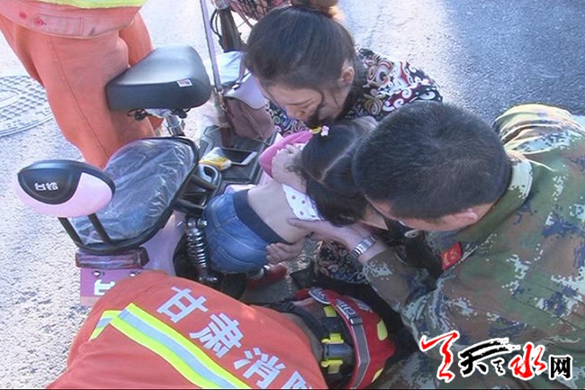天天天水網(wǎng)訊【記者蔚軍平 通訊員胡升飛】9月6日,一名女童乘坐家長(zhǎng)的電動(dòng)車時(shí),不慎右腳卡在后車輪處,經(jīng)過消防官兵積極施救,最終女孩得以脫險(xiǎn)。