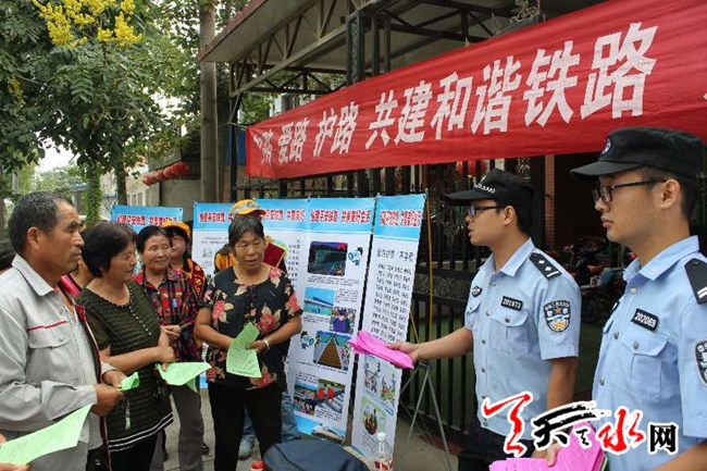 ?近日,西安鐵路公安處社棠站派出所干警圍繞“迎接十九大,忠誠保平安”實(shí)踐活動,深入社棠鎮(zhèn)、伯陽鎮(zhèn)等鐵路沿線鄉(xiāng)鎮(zhèn),開展了鐵路線路治安隱患排查和愛路護(hù)路宣傳工作,排查整改了一批線路治安隱患,有效提升了鐵路沿線群眾愛護(hù)鐵路和自我防護(hù)意識。? 記者 孫燕蕓 攝