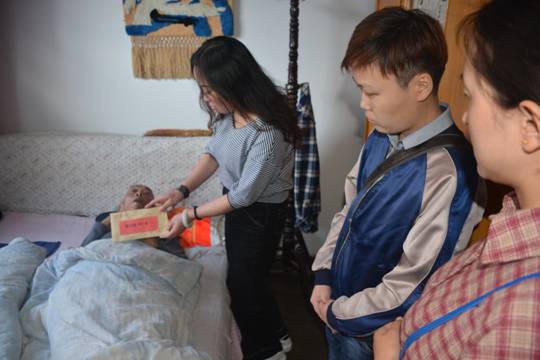 ????殷淑梅老人今年85歲,曾經(jīng)因車禍導(dǎo)致臥床不起,現(xiàn)體弱多病常年吃藥,老伴去世的早,平時靠兒子照顧,社區(qū)工作人員與老人親切交談,詳細(xì)詢問老人的健康狀況、生活上的困難、了解他的精神狀態(tài),有針對性地進(jìn)行心理咨詢和心理疏導(dǎo),工作人員同時將“愛心聯(lián)系卡”送到老人手中,并告訴他以后有了困難就可撥打“愛心聯(lián)系卡”上的電話,社區(qū)工作人員將隨叫隨到,及時幫助他們解決困難。殷淑梅老人非常激地說:感謝黨和政府對我的關(guān)懷。