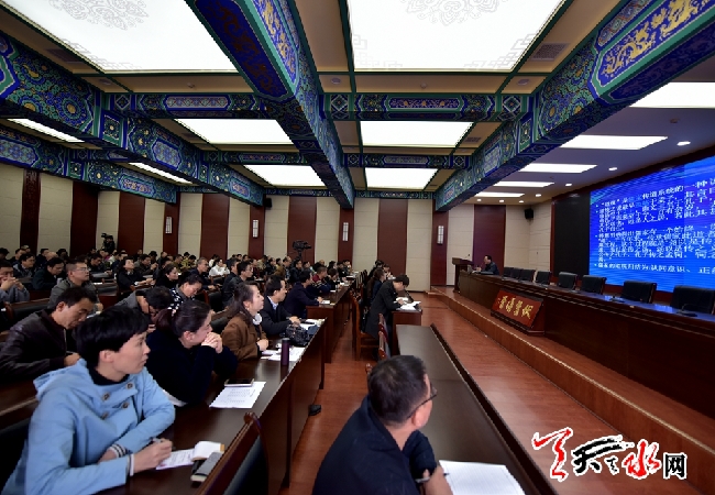 ???? ?為學(xué)習(xí)貫徹習(xí)近平總書記“7·26”重要講話和關(guān)于學(xué)哲學(xué)用哲學(xué)的重要指示精神,進一步發(fā)揚學(xué)哲學(xué)用哲學(xué)的優(yōu)良傳統(tǒng),運用馬克思主義立場觀點方法更好地指導(dǎo)實踐、推動工作舉辦的此次專題講座,由中共甘肅省委宣傳部、中共天水市委主辦,中共天水市委宣傳部、中共天水市委講師團、天水市社會科學(xué)界聯(lián)合會、天水市博物館、天水日報社、天水廣播電視臺承辦。
