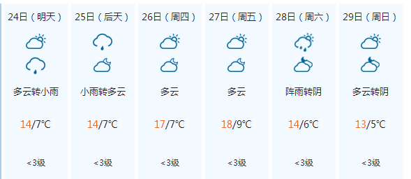 天天天水網(wǎng)訊 10月23日天水市氣象臺發(fā)布未來一周天氣預(yù)報,未來一周我市天氣以多云為主。具體預(yù)報如下:23日晴間多云,24日多云轉(zhuǎn)小雨,25日小雨轉(zhuǎn)多云,26-27日多云,28日陣雨,29日多云。氣溫預(yù)報以秦州區(qū)為例,日最低氣溫6——9℃,日最高氣溫13——18℃,日平均氣溫9——13℃。