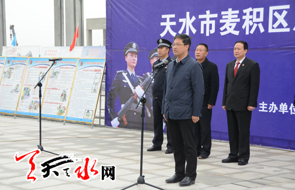 ????天天天水網訊 11月1日,天水市麥積區(qū)反恐怖主義法宣傳月活動啟動儀式在天水南站廣場舉行,區(qū)委常委、政法委書記、區(qū)反恐怖工作領導小組組長杜崢嶸,區(qū)政府黨組成員、分局黨委書記、局長、區(qū)反恐怖工作領導小組副組長李世和同志出席啟動儀式并講話。