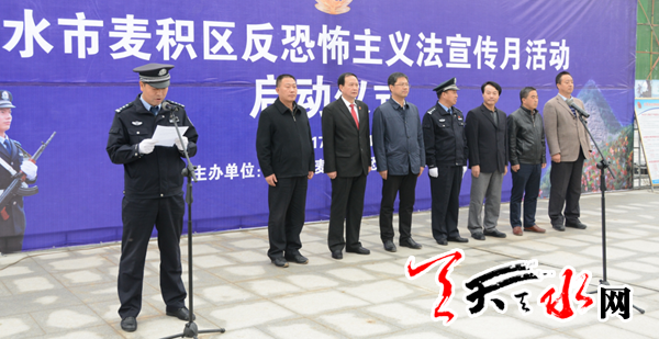 ????區(qū)檢察院常務副檢察長張豐登、區(qū)法院常務副院長張建明、區(qū)委政法委副書記徐衛(wèi)東、區(qū)委宣傳部副部長王旺紅、區(qū)政府辦副主任張文選出席啟動儀式。分局黨委委員、副局長竇學智主持啟動儀式。蘭州鐵路公安局天水南站派出所、全區(qū)反恐怖工作領導小組各成員單位代表參加了啟動儀式。