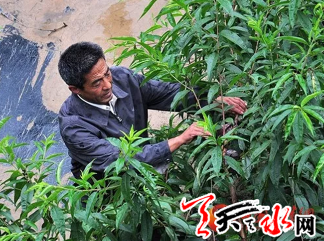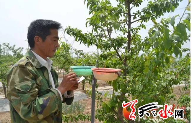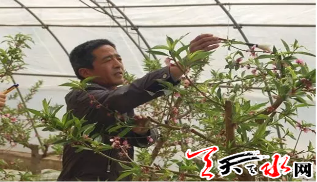 ????可是,好景不長,進(jìn)入上世紀(jì)八十年代末、九十年代初,由于不重視優(yōu)良品種換代升級,一直暢銷的蘋果出現(xiàn)了低迷,紅極一時的桃子也嚴(yán)重滯銷,豐收的果實因賣不出去而白白的爛掉、倒掉,果樹被大砍大鋸,秀美山川出現(xiàn)了光禿荒涼,靳志強(qiáng)心中十分困惑、難過。在老一輩苦勸下,靳志強(qiáng)堅持了下來,抱著試探的心態(tài),拿出賣果收入的五千多塊錢和朋友去陜西、河南、山東等地進(jìn)行了實地觀看,他發(fā)現(xiàn)秦安果品滯銷的原因,主要是品種單一,果農(nóng)素質(zhì)不高,重產(chǎn)輕質(zhì)、管理技術(shù)落后。他想,要搞好秦安果品這一行,必須從源頭抓起,先把品種的更新?lián)Q代搞好,再把果農(nóng)作務(wù)技術(shù)提高。他先從引進(jìn)桃子和蘋果的新品種做起,著手購買新品種接穗,在自家的果園中開始試種。觀察后,將表現(xiàn)好的品種免費提供給群眾高接換優(yōu)、建植新園。幾年后,他的果園成了名副其實的品種園,每到接樹時期,應(yīng)時為需求者提供接穗,進(jìn)行嫁接,特別是冬季,人們總是排隊,爭著搶著叫靳志強(qiáng)給他們剪樹,就這樣,他每年總是先別人、后自己,常年堅持,甚至給不少農(nóng)戶連續(xù)長達(dá)十多年幫剪果樹……