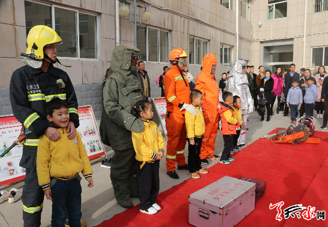 ????? 天天天水網(wǎng)訊 (通訊員 景遼強(qiáng))為進(jìn)一步提升幼兒園師生消防安全意識和消防安全能力,切實做好轄區(qū)幼兒園消防工作。11月10日,天水支隊七里墩中隊結(jié)合“119”消防宣傳月邀請了蘭天幼兒園兩百多名“萌娃”進(jìn)紅門“零距離”體驗,為“萌娃”們送上了一場別開生面的消防大餐。
