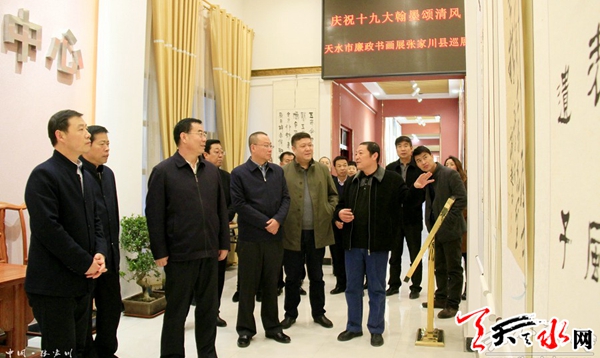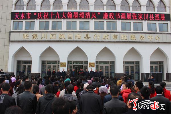 ????天天天水網(wǎng)訊 11月10日,由天水市紀(jì)委、市文聯(lián)主辦的天水市“慶祝十九大、翰墨頌清風(fēng)”廉政書畫巡展在張家川縣文化藝術(shù)交流中心展出??h四大組織在家領(lǐng)導(dǎo)、市紀(jì)委、市書協(xié)相關(guān)領(lǐng)導(dǎo)參加了開展儀式。
