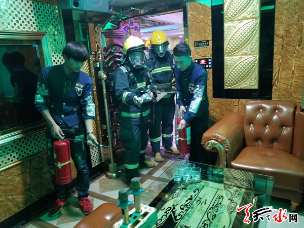天天天水網(wǎng)訊(通訊員王瑩)11月15日晚,清水大隊組織全體專職隊員分別深入轄區(qū)海悅KTV、朝東購物廣場、誠信賓館開展夜間滅火救援演練。