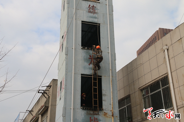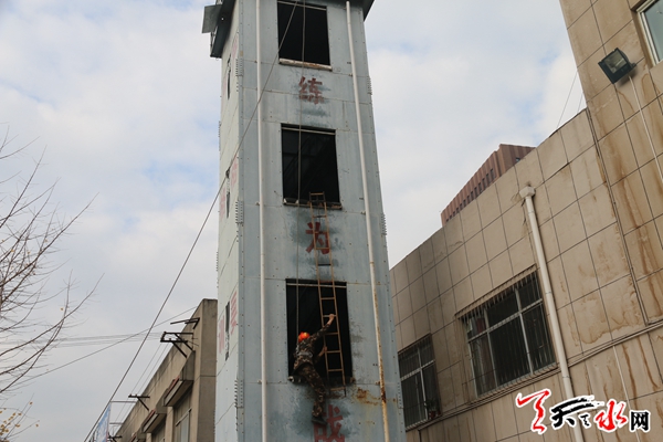 天天天水網(wǎng)訊(通訊員景遼強(qiáng))為進(jìn)一步提高官兵的業(yè)務(wù)技能水平,切實(shí)增強(qiáng)官兵的滅火救援能力。11月14日,七里墩中隊(duì)組織全體官兵開展掛鉤梯訓(xùn)練。