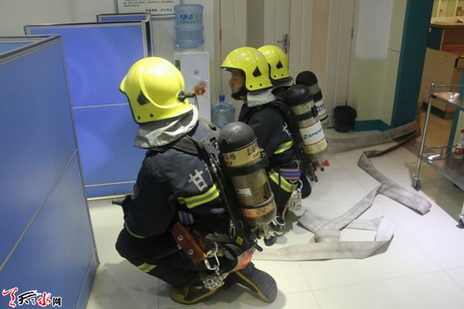 在演練前,七里墩中隊(duì)全體官兵首先在單位責(zé)任人的帶領(lǐng)下對(duì)單位內(nèi)的消防設(shè)施、疏散通道、附近水源等情況進(jìn)行了詳細(xì)了解。熟悉完畢后,中隊(duì)組織全體官兵開展滅火演練。演練假設(shè):天水市男科醫(yī)院三樓四號(hào)病房因用電量過大導(dǎo)致電路負(fù)荷短路引發(fā)火災(zāi),火勢(shì)迅速向鄰近病房蔓延,現(xiàn)場(chǎng)有人員被困,情況十分危急。七里墩中隊(duì)接到群眾報(bào)警后,迅速出動(dòng)2輛消防車,12名消防官兵趕到現(xiàn)場(chǎng)實(shí)施救援。到達(dá)現(xiàn)場(chǎng)后,指揮員立即下達(dá)作戰(zhàn)任務(wù),攻堅(jiān)組迅速攜帶破拆工具上三樓營(yíng)救疏散被困人員;掩護(hù)組利用水罐車出1支水槍上三樓掩護(hù)攻堅(jiān)組人員輔助進(jìn)行搜救;滅火組利用三樓室內(nèi)消火栓出1支水槍對(duì)火勢(shì)進(jìn)行打擊。經(jīng)過消防官兵近20分鐘的奮力撲救,現(xiàn)場(chǎng)火勢(shì)被成功撲滅,被困人員被成功救出,無人員傷亡,演練取得了圓滿成功。