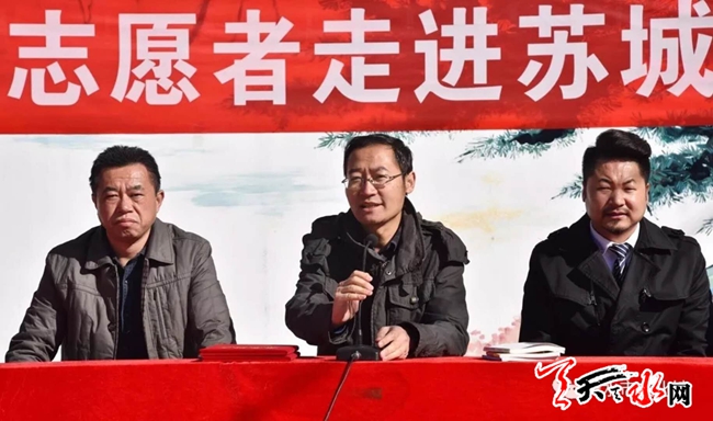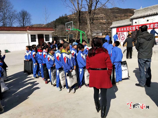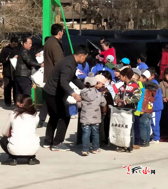 ????在“志愿者羽絨服愛心捐贈”活動上,天水市文化館館長李靖代表所有文化志愿者對學(xué)生們表達了深切的祝福,并對在場的小學(xué)生們提出了“從小要懷揣遠大的理想”、“勤奮努力學(xué)習(xí)”、“強身健體”的三個希望。他用偉大領(lǐng)袖毛澤東童年時期的一句詩“孩兒勵志出鄉(xiāng)關(guān),學(xué)不成名誓不還”來激勵孩子們一定要樹立遠大的抱負。同時,汪川鎮(zhèn)鎮(zhèn)長王景中、蘇城學(xué)區(qū)校長張連軍、學(xué)生代表一一發(fā)言,表達了對天水市文化館所有文化志愿者們愛心捐贈的誠摯感謝以及要用好好學(xué)習(xí)來表達對愛心捐贈的回贈。