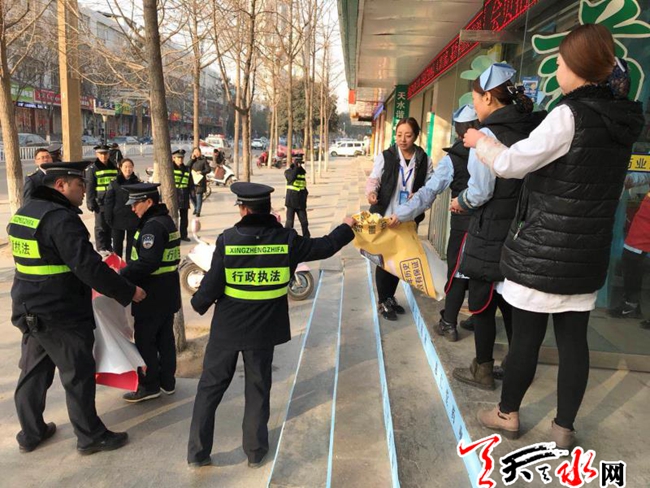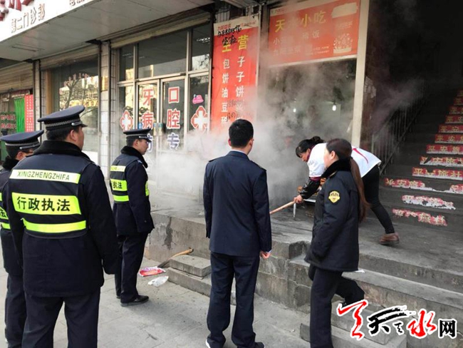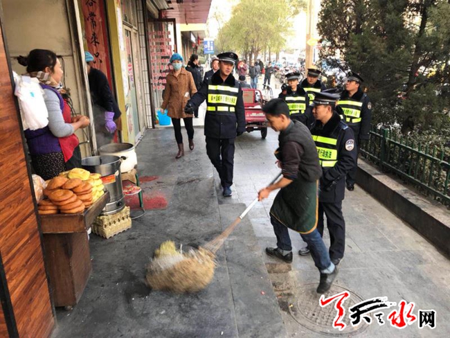????天天天水網(wǎng)訊【記者楊旭】為切實做好秦州區(qū)執(zhí)法局優(yōu)化城市環(huán)境、提升城市形象工程“三個標準路段”推進工作,11月30日,秦州區(qū)執(zhí)法局東關中隊通過積極協(xié)調,聯(lián)合秦州區(qū)食藥監(jiān)局東關食藥監(jiān)所,對轄區(qū)示范路建設路屢教不改重點管理對象,進行了集中整治。